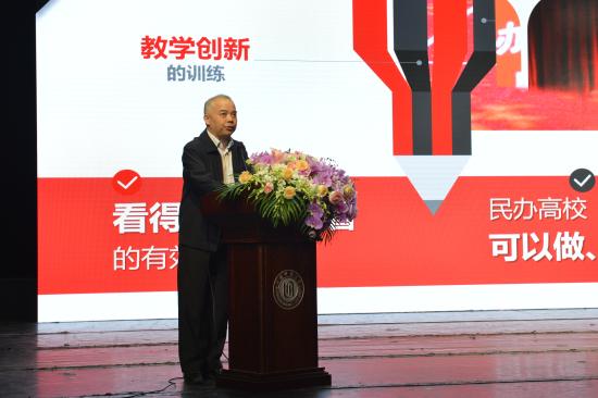 叶才福校长作为民办高校代表,受邀在颁奖典礼上发表了热情洋溢的讲话,汇报了天华学院师资队伍建设过程中,从“三个助推”阐述了天华学院从“强师工程”中的受益。首先,“强师工程”助推天华活力课堂教学改革。我校目前有160门课程参加了“活力课堂教学改革”,在活力课堂上,教师将全部所学倾注在教学上,研究课堂、研究教法,研究学生的个性化发展,建设精品课程网上资源。其次,“强师工程”助推天华教学名师建设。我校目前有校内教学名师二级11人、三级24人,预备级29人,根据不同名师级别,每月另外给予特殊津贴。最后,“强师工程”助推天华师资国际化战略。自建校以来,以学期或学年为主研修访学的教师共计220人次,教师几乎每2人中就有1人有出国访学的经历。天华学院正在致力培养国际化“三双型”师资学校,正在借助强师工程的平台,启动新一轮博士培养计划,未来三年将打造出具有百人规模的国际化博士师资队伍。
