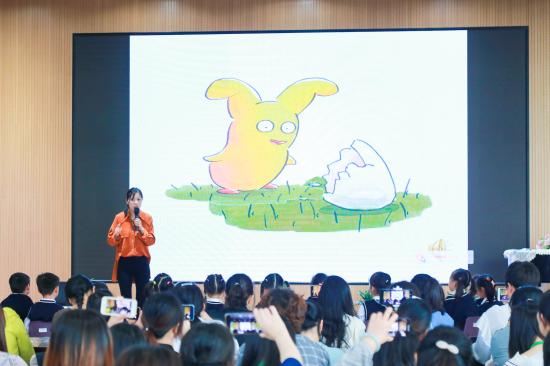 第二个展示活动是中班的绘本教学《没有耳朵的兔子》。执教老师将活动清晰地分为三个环节,认知“没有耳朵的兔子”——感受孤独的心情——体验与朋友在一起的快乐,从中体会兔子的心理变化过程;最后完整地欣赏和倾听故事,帮助幼儿进一步感受到有朋友的快乐。两位老师用生动活泼、流畅自然的教学姿态,诠释着“眼中有孩子,心中有目标,处处有教育”理念,行云流水般的教学让大家称赞不已!