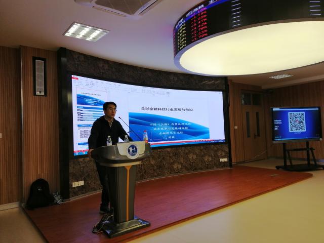2019年11月18日上午,中国(上海)自贸区研究院(浦东改革与发展研究院)金融研究室刘斌主任应邀来到天华学院给金融数学和互联网金融方向的学生做了一场关于全球金融科技行业发展与前沿的讲座,谢富生老师主持讲座,许多学生慕名而来,现场座无虚席。