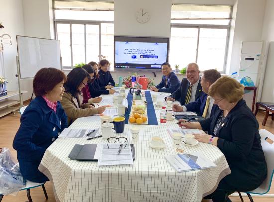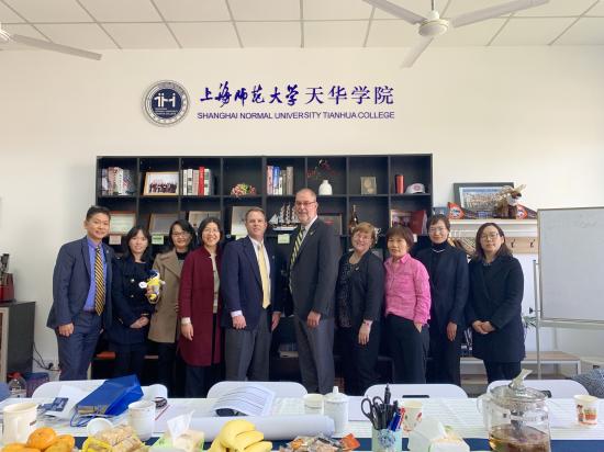下午,商学院、国际交流处与美方就培养方案的课程设置问题进行详细探讨,2019年12月份,美国田纳西大学查塔努加分校的首门课程《管理学》即将开班,期待学生体验带来不一样的英语训练、教学互动及文化交流。