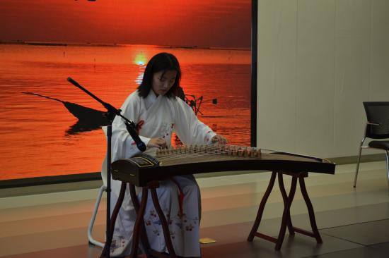 2019级国际商务(国际课程合作)专业的学生为与会嘉宾展示才艺,邵子玥同学为来宾演奏古筝曲目《渔舟唱晚》,获得与会嘉宾连连称赞。互动环节中,同学们对未来美国的学习很是期待,就入学要求、课程情况、考研究生、学费等话题踊跃提问。