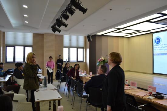 程葆青院长致欢迎辞,对田纳西大学查塔努加分校来访表示热烈欢迎,两周之前,石伟平执行董事长、程葆青院长和胡珍处长等天华团队实地访问了田纳西大学查塔努加分校,其工作人员严谨的工作态度给天华同仁留下了非常深刻的印象。田纳西大学查塔努加分校商学院得到国际商学院协会(AACSB)的认证,全球只有3-4%的商学院获此认证,代表着一所商学院的最高成就,也是商学教育达到世界级水平的重要标志。期盼学生们有机会前往田纳西大学查塔努加分校学习。