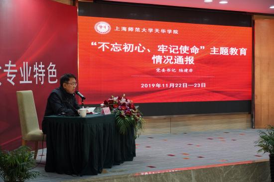 接着,党委书记陆建非作“不忘初心、牢记使命”主题教育情况通报。陆书记从“为中国人民谋幸福”的初心和“为中华民族谋复兴”的使命谈起,为在场的领导干部作详细的主题教育情况通报。陆建非指出,我校党委在上级党委的领导和校董事会的支持下,提高政治站位,明确开展主题教育使命感;确定整治重点,提升开展主题教育获得感;利用优势资源,提升开展主题教育责任感。陆建非强调,学校主题教育注重以围坐的形式认真读原文、读原著。领导干部也通过学习提高了政治站位,并通过调研了解学校各个领域的问题情况,做到刀刃向内、即知即改,很多特色案例被上级主题教育领导小组采用并受到了一致好评。通报最后,陆建非就领导班子专题民主生活会进行了再动员再部署。