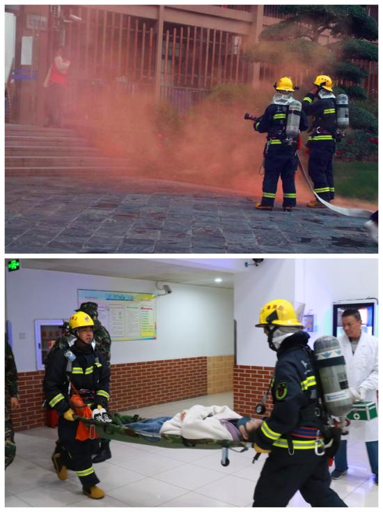 此次演练融合了声音、灯光、烟雾等效果,消防队员实地抛管、灭火、伤员救护,场景逼真,学生疏散井然有序。通过演练师生们熟悉了疏散逃生的组织程序,掌握了火场逃生基本技能,进一步增强了消防安全意识。