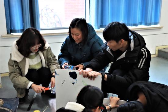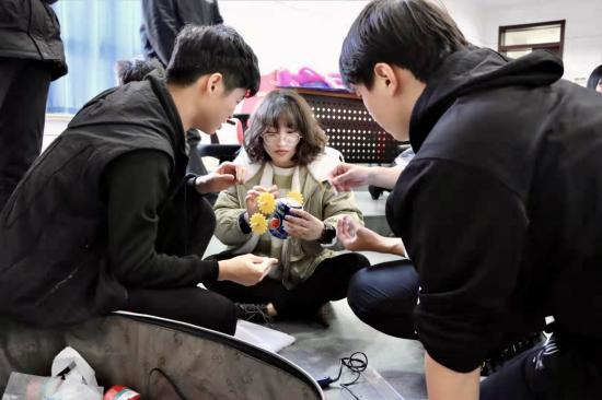 比赛过程中, 队员们分工明确,配合默契,结合想象与动手能力在制定方案后迅速行动,两组队员们紧密配合,在规定时间里发挥各自专长来制作、测试、改进作品。展现了我校学生良好的动手能力与相关知识技术素养。