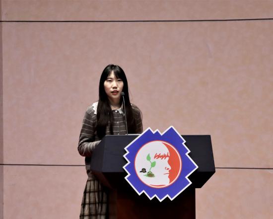 最后,来自我校工学院汽服专业的陈郑烊同学作为参赛选手代表上台发言,她表示在天华学院各界领导的支持下,能够作为冬瓜工作室的一员连续四年参加大学生头脑奥林匹克竞赛让她收益匪浅,创新与解决问题能力都得到了很大的提高。