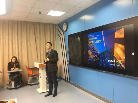 (国际教育中心副主任Bruce Wang与学生分享出国留学)