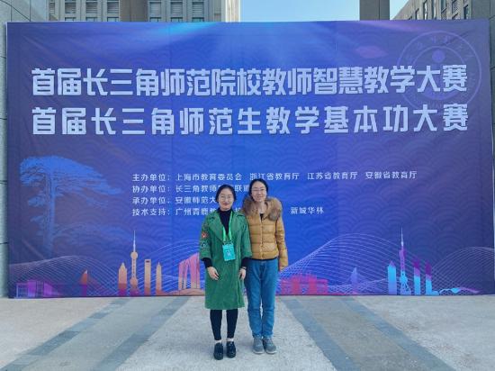 首届长三角师范生教学基本功大赛历时两个阶段。第一阶段在上海市举行,由来自华东师范大学,上海师范大学,上海音乐学院,上海体育学院,上海师范大学天华学院,上海外国语大学贤达经济人文学院等六所高校的代表队参赛。此次基本功大赛中教学设计,课件制作等环节全部在比赛现场完成,难度高,挑战大。大赛由教学设计、课件制作、即席讲演、有生上课(含板书)四个项目组成,比赛场地在上海师范大学,教室内有5名学生配合上课。选手根据比赛现场抽取的教材内容,按照课程标准进行1课时的教学设计及课件制作,时间为150分钟。接着进入准备室抽取即席讲演题目(二选一,讲演题目主要为与学科教学相关的案例分析,准备5分钟)最后进入竞赛室,首先进行3分钟的即席讲演,然后进行10分钟的上课(含板书)。由杨艳带队,杨艳和韩苏曼指导的,初等教育学院16级小学教育(中外合作办学)专业的顾洁和邹家宇,16级小学教育专业的蔡佳璇凭借扎实的实践教学基本功和出色的临场发挥,成功晋级,代表上海市参加长三角师范生教学基本功大赛。