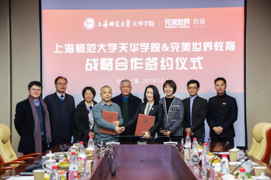 2019年12月24日上午,我校与完美世界教育科技有限公司战略合作签约仪式在我校同华楼会议中心隆重举行。董事长邹荣祥、校长叶才福、副总校监李雅君、副校长王友根,以及艺术设计学院常务副院长徐子卿参加了签约仪式。完美世界集团高级副总裁兼官方发言人、完美世界教育董事长王雨蕴,常务副总裁郭擂、完美世界IP管理与运营部总监张瑞,以及华东大区经理郝连春前来参加此次签约仪式。