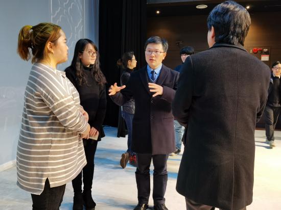 团队一行由我校艺术设计学院常务副院长徐子卿及数字媒体艺术专业主任陈如华带领,工作室骨干教师侯博奡、严彬,16级数字媒体艺术专业学生陈开平、朱宇超等人随行。团队受到了SAC艺术中心创立者金旼成、理事金泰亨、金效演教授及馆长孫大願等人地热情接待。演出结束后他们邀请主创人员一同参观了学校的校舍,包括本馆、SAC艺术中心、星光馆、创造馆、艺术馆、梦想馆等,并表示此次演出体现的创作理念为SAC以后挖掘韩国传统艺术提供了重要启发和借鉴,这次演出非常有特色,是天华学院与SAC共同带给首尔观众的一份新年礼物,希望未来能在韩国看到更多类似演出。