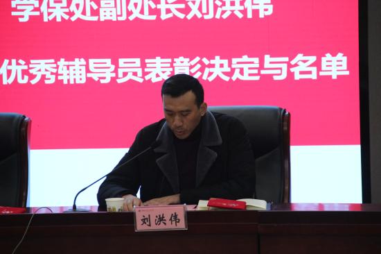 (学保处副处长刘洪伟宣读优秀辅导员表彰决定与名单)