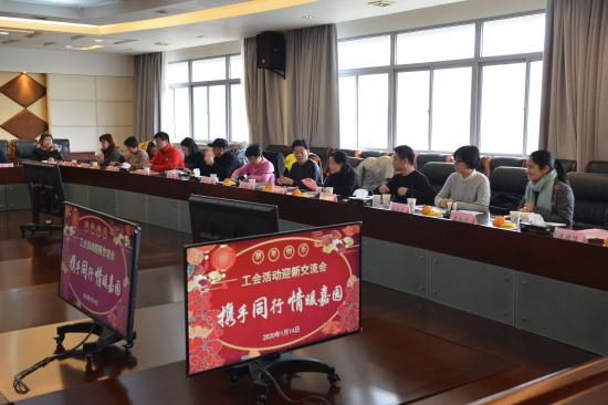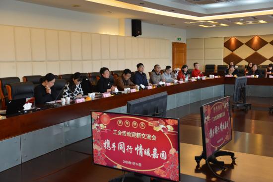 2020年1月14日下午,学校明华楼五楼会议中心里济济一堂、暖意融融,我校工会组织的“携手同行,情暖嘉园——工会活动迎新交流会”正在这里开展。校党委书记陆建非、副校长兼人事处处长吴国兴、工会常务副主席兼妇工委主任曹卫等参加会议。嘉定工业区总工会主席陈祥林、副主席肖丽洁、赵游芳、陈斌携嘉定工业区20多家企业、社区工会主席及代表出席会议。