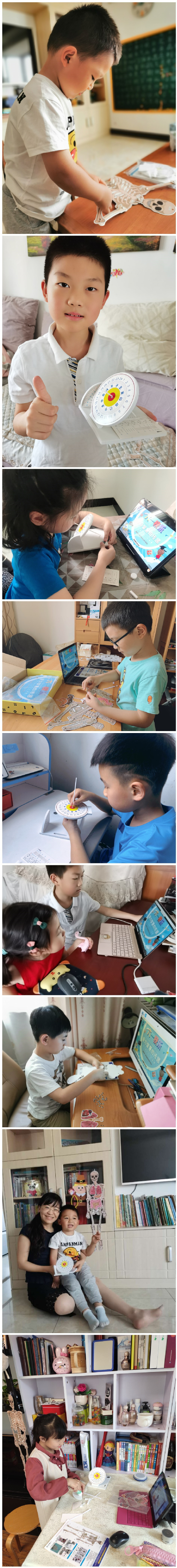 活动伊始,工会常务副主席曹卫代表学校向小朋友及其家长致以最诚挚的问候。随后赛思创客中心团队在云端上和孩子们进行科技体验活动,健康学院的刘吉辉老师生动形象为小朋友们讲解了“解密人体”的知识。刘老师还结合本次疫情的相关内容,耐心仔细带领小朋友对自己骨骼及器官有一个深度的认识,孩子们在家长的陪伴下,个个都出色完成了一组人体模型的搭建。实习实训处的邱欣寅老师为大家生动讲述古代时间探秘,去寻找古人获取时间的奥密,瞬间引发了小朋友对大自然的极大兴趣,最后大家兴致勃勃分别制作了一套古老而充满古人智慧的日晷。