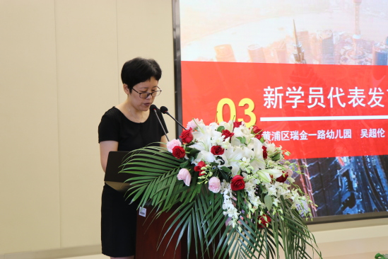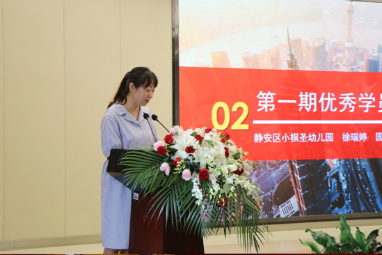 随后,第一期优秀学员代表,来自静安区小棋圣幼儿园的园长徐瑞婷与大家分享了在研修班的学习经历与感触。新学员代表,黄浦区瑞金一路幼儿园园长吴超伦表达了对研修班的期待与信心。