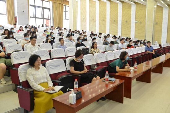 习近平总书记在全国高校思想政治工作会议上强调,“高校立身之本在于立德树人。要坚持把立德树人作为中心环节,把思想政治工作贯穿教育教学全过程,实现全程育人、全方位育人”。为落实立德树人根本任务,结合“四史”学习,教师工作部开展“课程思政”教师发展专题系列沙龙活动。6月30日下午13点30分,晖华楼报告厅举行首期沙龙,特邀上海中医药大学张黎声教授以“人体解剖课”为例,与学校全体教师分享如何将“课程思政”工作做得更细更有效。副校长吴国兴主持,学校100余名教师踊跃参加了讲座。
