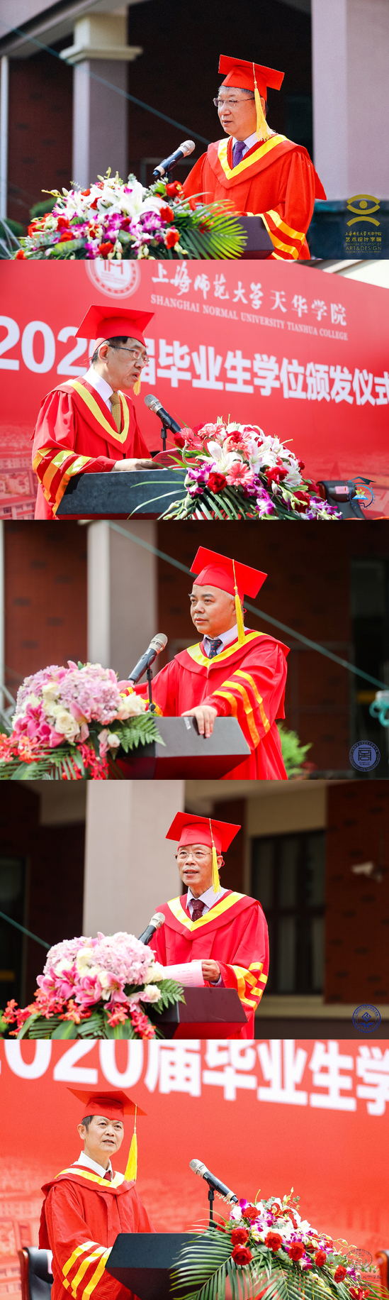 受2020年新冠疫情影响,根据教委有关毕业生返校工作要求,我校毕业生分批返校,毕业典礼暨学位颁发仪式的形式从以往的学校统一举办改为以二级学院为单位分批进行。各二级学院于6月17日-7月3日分批组织开展学位颁发仪式。天华学院执行董事长石伟平、党委书记陆建非、校长叶才福、总校监郭伟奇、副校长陈新斌以及各二级学院院长、总支书记、指导教授、教师代表出席各学院毕业生学位颁发仪式。