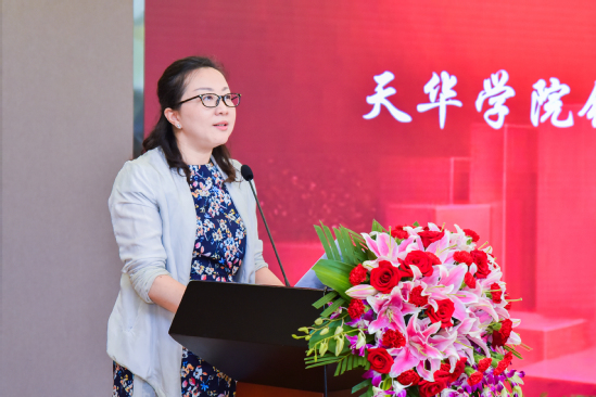副校长龚春蕾在致辞中回应了嘉定区教育局对研修培训项目的期望,同时,向全体学员介绍了研修项目设计的政策背景,介绍了天华学院以及学前教育学院的总体情况,以及研修班的筹备过程,并表达了对研修班顺利举办的信心,也鼓舞了研修班学员们的学习热情。
