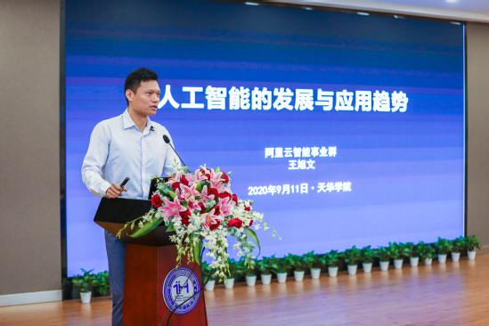 孟子从技术发展趋势、教育政策两个方面出发,指出智联网已经成为阿里巴巴集团新的主赛道。随后,他结合培养目标、课程内容概览、教学管理平台三方面,详细介绍了物联网人工智能课程——图像视觉、语音智能。孟子表示非常荣幸能和天华学院达成合作,之后将竭力共享优势资源、创新方式和手段,打造一个开放的平台,衔接从教学到就业、大赛、创业等社会化活动,推进天华工学院智能物联网实训基地的建设。