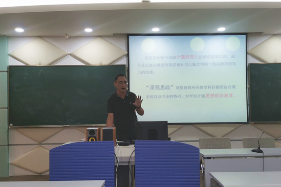 9月9日上午在“从思政课程到课程思政”专题讲座中,宣传部部长齐砚奎为大家呈上了一场颇具理论深度的专题讲座。齐老师带领大家共同学习了习近平总书记在全国高校思想政治座谈会上的讲话精神与对高等教育发展的政治定位,同时勉励各位教师成为有理想信念、有道德情操、有扎实学识、有仁爱之心的“四有”好教师。