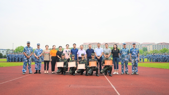 检阅结束后,军训团宣读表彰决定,各学院总支书记为先进连排、军训标兵颁发荣誉证书。