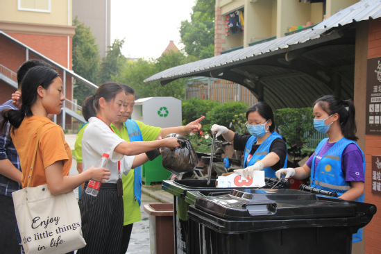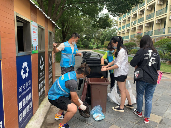 按照上海市垃圾分类的要求,为巩固提升校园生活垃圾分类减量工作的实效,校园生活区共设生活垃圾分类投置点8个,每个投放点位配备2名学生生态文明志愿者、1名宿管人员,引导分类投放。