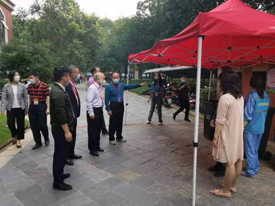 学校领导也非常关心学校生活垃圾分类工作,亲临生活区垃圾投置点,查看垃圾分类情况。