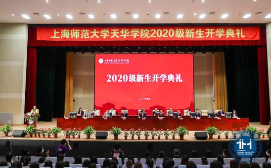 9月23日下午,学校在大礼堂隆重举行2020级新生开学典礼。在疫情防控常态化背景下,整个过程以线上与线下相结合的方式举行,通过直播平台向校内外进行现场直播,并在体育馆、晖华楼报告厅、小剧场开设了分会场方便新生们观看。上海师范大学副校长蒋明军、上海师范大学天华学院党委书记陆建非、校长叶才福、总校监郭伟奇以及校务委员会全体成员在主席台就坐。会议由上海师范大学天华学院副校长龚春蕾主持。