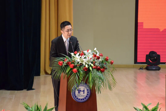 开学典礼最后,上海师范大学副校长蒋明军发表讲话。蒋明军首先带大家回顾了上海师范大学的深厚底蕴与杰出成就,同时介绍了上海师范大学天华学院的办学情况,随后表达了对学生的期待与寄语。希望广大新生坚守初心,做一个勇于担当的新青年;勤学善思,做一个追求卓越的奋斗者;全面发展,做一个身心健康的追梦人,不断进取,拥有精彩的大学生活,认真学习,书写属于自己的王者荣耀。