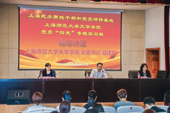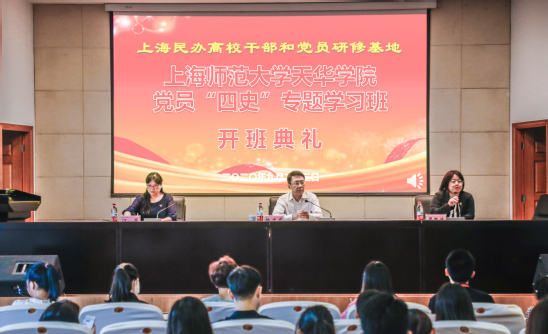 9月23日,上海师范大学天华学院党员“四史”专题学习班在学校明华楼报告厅举行开班典礼。上海民办高校干部和党员研修基地项目负责人、上海师范大学天华学院党委书记陆建非作动员讲话,学校党校校长、组织部部长周凯波主持开班典礼,党校副校长、组织部副部长江芳出席会议,学习班165名党员参加开班典礼。