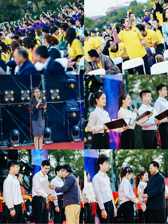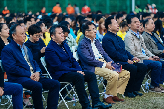下午16点50分,在傍晚的微风中,足球场草坪被灯光渲染一新,这既是向新生表达初见的欢迎,又向老生表达重聚的喜悦。党委书记陆建非、高级顾问陈颖书、副校长朱国权、副总校监张伟大、党委副书记曹云林以及二级学院、各职能处室领导莅临活动现场。