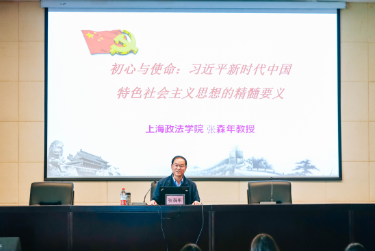 “初心与使命:习近平新时代中国特色社会主义思想的精髓要义”由上海市哲学学会理事,上海市领导科学学会理事,上海市马克思主义研究会理事,上海政法学院马克思主义学院教授张森年主讲。
