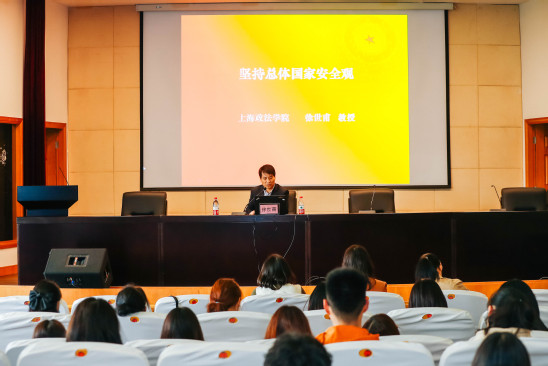 徐世甫教授以总体国家安全观的提出、历史背景、主要内容和主要举措为内容,以统筹国内国际两个大局为视角,从国际政治经济关系的高度,讲述了坚持总体国家安全观的重要性。徐教授指出,国家安全是国家生存和发展的基本前提,是全国各族人民根本利益所在。习近平在中国共产党第十九次全国代表大会上的报告中提出:“坚持总体国家安全观,统筹发展和安全,增强忧患意识,做到居安思危,是我们党治国理政的一个重大原则。”当前,我国面临复杂多变的安全和发展环境,各种可以预见和难以预见的风险因素明显增多,国家安全是安邦定国的重要基石,如何走出一条中国特色国家安全道路,与我们人人相关。他告诫在座的每一位同学:在国际局势波诡云谲的今天,我们要时刻警醒,并树立忧患意识,防范风险挑战,尤其是以互联网为代表的非传统安全风险。广大青年学生要树立为民族自强而奋斗的决心,只有国家足够强大,才能更好地立于世界之林,不惧风雨。