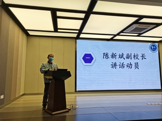 首先陈新斌副校长代表校领导对各位与会的老师多年来为测评工作的辛勤付出表示感谢;随后向大家提出了四个工作要求:“规范、客观、及时、沟通”,并详细阐明了这四个要求的具体内容,特别指出在后疫情的当下做好防护工作;最后陈校长期望大家齐心协力,圆满完成第十一次质量测评。