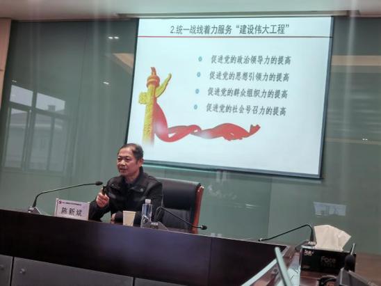 12月11日下午,校统战部在明华楼五楼会议中心进行了新一届各党总支(直属党支部)统战委员专题培训会议。学校副校长、统战部部长陈新斌作专题培训。