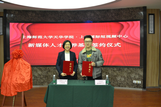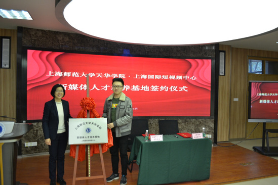 签约仪式上,程葆青教授和上海国际短视频中心执行总裁丁嘉源签订了《人才培养战略合作框架协议》,并共同为新媒体人才培养基地进行了揭牌。双方将在师资互派、订单培养、顶岗实习、就业推荐、技术支持、项目合作、基地建设等多方面展开合作。