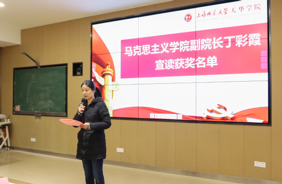 (马克思主义学院副院长丁彩霞宣读获奖学生名单)