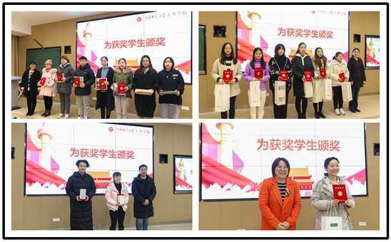 同学们的分享虽朴实却发自内心饱含深情,也是一次生动的爱国主义教育。随后,周凯波老师、丁彩霞老师、包静波老师以及马克思主义学院黄播老师为此次活动的一等奖、二等奖、三等奖和优胜奖的同学颁发了获奖证书和奖品。