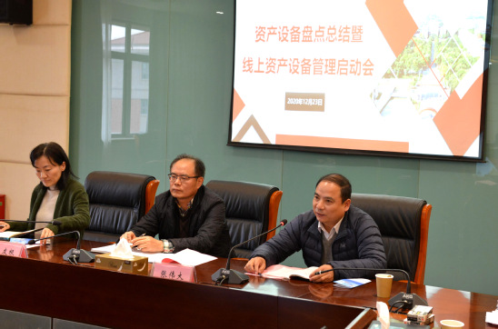 2020年12月23日中午12:00,我校在明华楼五楼会议中心召开资产设备盘点总结暨线上资产设备管理启动会,学校副校长王友根、党委副书记许岳、监察委副总校监李雅君、监察委副总校监张伟大,资产设备处处长朱清、财务处处长万素琴、资产设备处副处长董海霞,各职能处(室)、二级学院资产管理负责人和资产设备管理员参加了会议。会议由资产设备处处长朱清主持。