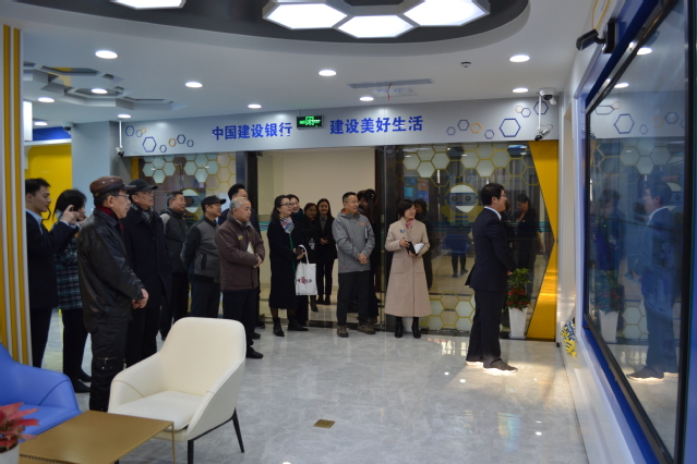 (学校校务委员会领导正在参观“金蜜蜂”校园e银行)