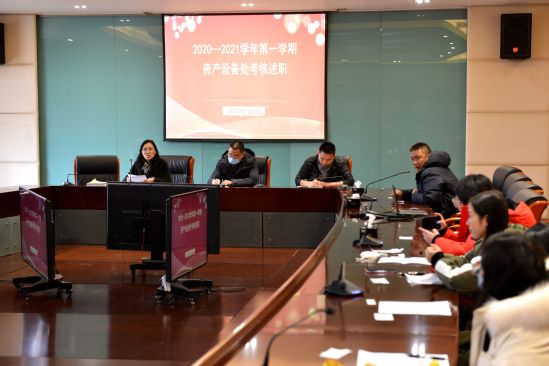 2021年1月6日和1月7日,资产设备处组织开展学期考核述职,资产设备处处长朱清,副处长董海霞、周建文全程参与并组织了考核。考核按照图书馆、车队、资产与场所管理三个条线分别组织实施。