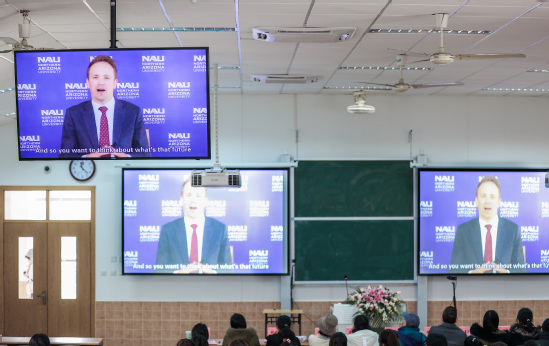 最后,北亚利桑那大学Daniel校长的视频以及学校环境的介绍,激发了学生们对未来个人发展以及如何为整个社会做出贡献的思考。鼓励了学生们珍惜现在的学习机会,用新办法解决旧问题并放眼全球格局,为整个世界的共同发展贡献出自己的一份力量。