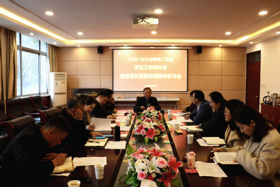 为贯彻落实邹董事长新学期重要讲话精神,研究部署2021年学生工作,规范学生管理,明确工作职责,推动学生工作提质增效,学保处于2021年2月25日上午9:30,在月华楼270会议室召开新学期学生工作研讨会暨董事长重要讲话精神学习会。校党委副书记、学保处处长曹云林,学保处常务副处长包静波,学保处副处长刘洪伟、邵海波,学保处副处长、校团委书记杨央以及各二级学院党总支书记出席。