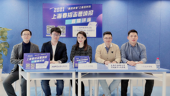 新春伊始,天华学院2021年招生工作已紧锣密鼓的开展。2月21日(周日),我校招生办参加了由上海市教育考试院联合《上海中学生报·高招周刊》和上海高招发布举办的“2021春招志愿填报直播活动”。本场讲座在2月21日下午1:00-1:50通过“哔哩哔哩”网站面向所有考生与家长直播。讲座由上海市教育考试院高招办王阳副主任主持,我校招生办的陈宇亮老师与杉达学院、上海外国语大学贤达经济人文学院和建桥学院的招生办老师共同就考生关注的春招政策、相关专业、志愿填报技巧、校测注意事项等内容进行了全面解读。