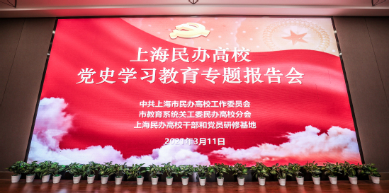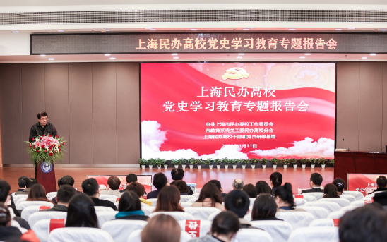 3月11日下午,上海民办高校党工委在我校晖华楼报告厅召开党史学习教育报告会,贯彻落实中央、市委和市教卫工作党委关于开展党史学习教育的部署要求,学习贯彻习近平总书记在党史学习教育动员大会上的重要讲话精神、给上海市新四军历史研究会百岁老战士们的重要回信精神。市教卫工作党委副书记、市教委副主任、市民办高校党工委书记闵辉对上海民办高校开展党史学习教育作部署,上海师范大学教授苏智良作《新四军与上海》专题报告。会议由我校党委书记陆建非主持。