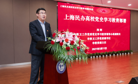 闵辉强调,民办高校党组织要高度重视,提高政治站位,落实好学习教育的各项要求,扎实推进民办高校党建工作重点任务落地落实。要把党史学习教育同为群众办实事解难题结合起来,广泛开展“我为师生办实事”系列活动。各民办高校要把学校的事业发展放在中央对民办教育新要求的大局中思考,放在民办教育服务城市发展的格局中谋划,放在教育综合改革的新局中推进,要凝聚董事会、理事会、行政、监事会等共识,凝聚党员干部和广大教职员工集体的力量,把学习成效转化为工作动力和发展新局,推进上海民办高等教育事业高质量发展,以实际行动和出色的成绩迎接建党一百周年。