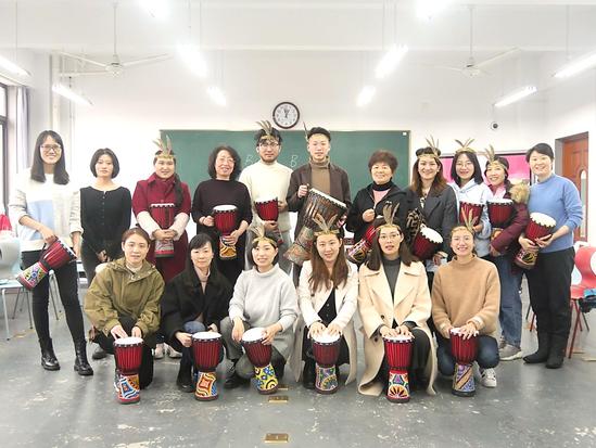 3月19日中午12:00,校工会邀请专业非洲鼓音乐团队,在光华楼416设计教室举办了 “‘鼓’舞人心,喜迎新”教职工非洲鼓彩绘制作活动。活动一开始,老师先为大家讲述非洲鼓的相关历史背景和知识,然后使用非洲鼓演奏了一段歌曲,在场的参与者立刻就被激昂欢快的鼓声感染了,纷纷忍不住一试身手。老师教了大家最基本的低、中、高三个音,又教了几种简单节奏,学习掌握时高时低,时而手掌,时而手心,时而手指,强劲有力的鼓点,共同感受非洲鼓的热情和活力。大家围坐在一起,合着音乐一起演奏,在保持节拍一致的情况下,玩起了小游戏击鼓传花,把活动推向了高潮。整场活动笑声不断、鼓声隆隆,让老师们领略了非洲鼓的独特魅力。演奏结束后,老师教授参与者如何彩绘非洲鼓,以及非洲鼓的一些日常保养常识。