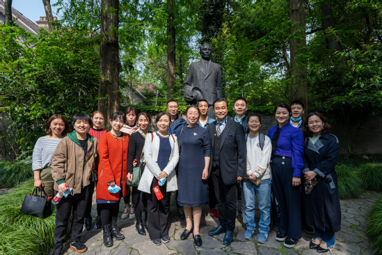 高峰老师带领委员们走读瑞金社区复兴路-思南路—南昌路,行经中法联谊会、思南公馆、锦江小礼堂、周公馆、马恩雕像广场、中国共产党发起组成立地、中国共产党代表团驻沪办事处纪念馆、思南书局等诸多红色文化和城市文化的名片地标。一栋栋历史旧居,沉淀深厚的历史底蕴,见证了一段段风云变迁。委员们行走在历史街区,聆听建筑背后的红色故事,现场体验感悟其背后蕴藏的革命传统和革命精神,学习革命历史,追寻红色记忆。