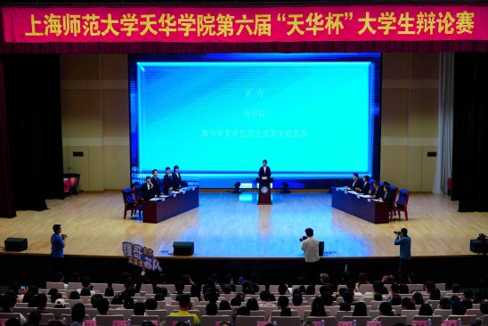 随着我校中英文辩论训练工作的不断深入,喜爱思辨的学生越来越多,全校辩论氛围也愈加浓厚。学校、各二级学院通过组织各类比赛,积极为辩手们提供展示的平台,达到以赛促训的目的。2021年5月26日,我校在晖华楼小剧场及大礼堂隆重举办“迎建党百年,展学子风采”第六届“天华杯”大学生辩论赛半决赛、决赛。学校党委副书记、学保处处长曹云林,学保处常务副处长包静波,学保处副处长刘洪伟,学保处副处长邵海波,学保处副处长、校团委书记杨央,以及各二级学院党总支书记、全体正副辅导员们莅临了本次大赛。比赛特邀通识学院副院长聂晓晶,马克思主义学院思想道德修养与法律基础教研室负责人黄播,党委宣传干事屠潇、季嘉担任评委。