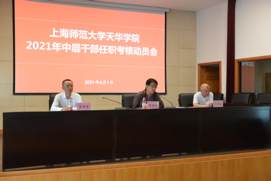 2021年6月1日下午,学校在明华楼报告厅召开2021年中层干部任职考核动员布置会,学校党委书记陆建非、校长叶才福、监察委总校监郭伟奇,全体校级领导以及中层干部出席,吴国兴副校长主持。
