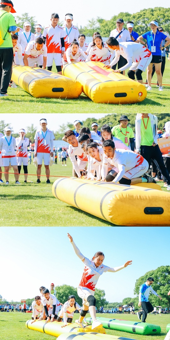下午,健身嘉年华趣味运动会在绿舟大草坪举行,我校教工队兴致勃勃地参加了合力跳长绳、一投定乾坤、同心齐鼓舞、锁定新目标、奋楫同舟进共五个项目的比赛,展现了团结协作、积极向上、顽强拼搏的体育精神。
